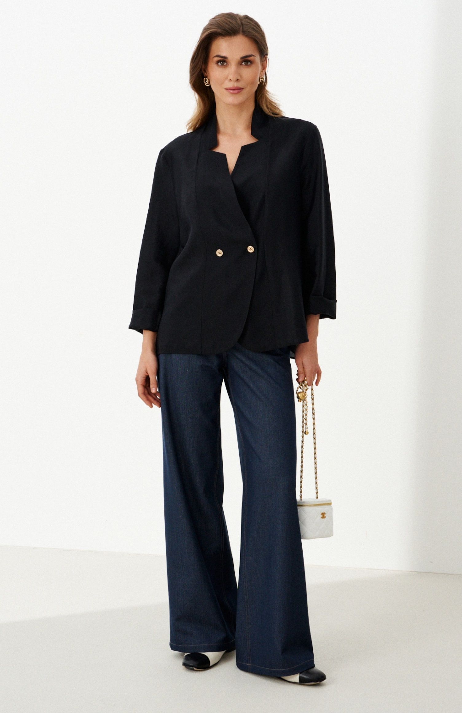48 Жакет: Длина изделия по спинке - 68см, Длина рукава - 60см, Ширина по груди - 58см, Ширина по низу - 61см, Ширина рукава вверху - 19,5см, Ширина рукава внизу - 15,6см;